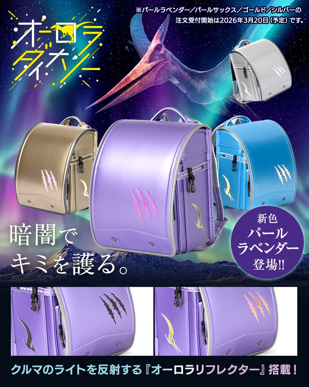 恐竜専門店ダイナソーベース様のオリジナルランドセル「オーロラダイナソーランドセル」ニューモデル(2027年入学)の、LP・SNS宣伝用画像など、Web販促物を一手に担当させていただきました。